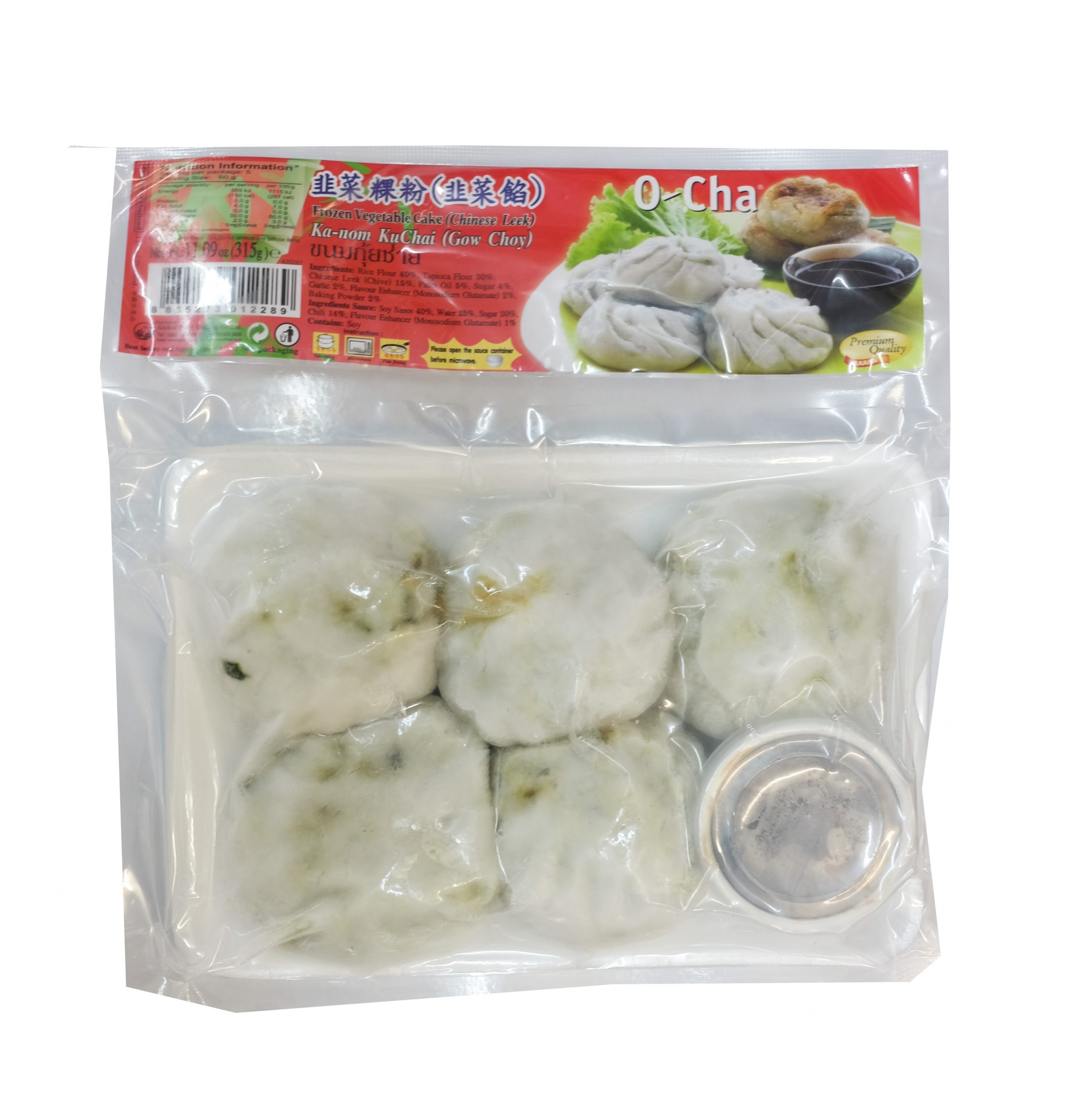 RICE FLOUR 40%, TAPIOCA FLOUR 30%, CHINESE LEEK (CHIVE) 15%, PALM OIL 5%, SUGAR 4%, GARLIC 2%, FLAVOUR ENHANCER (MONOSODIUM GLUTAMATE) 2%, BAKING POWDER 2%.
